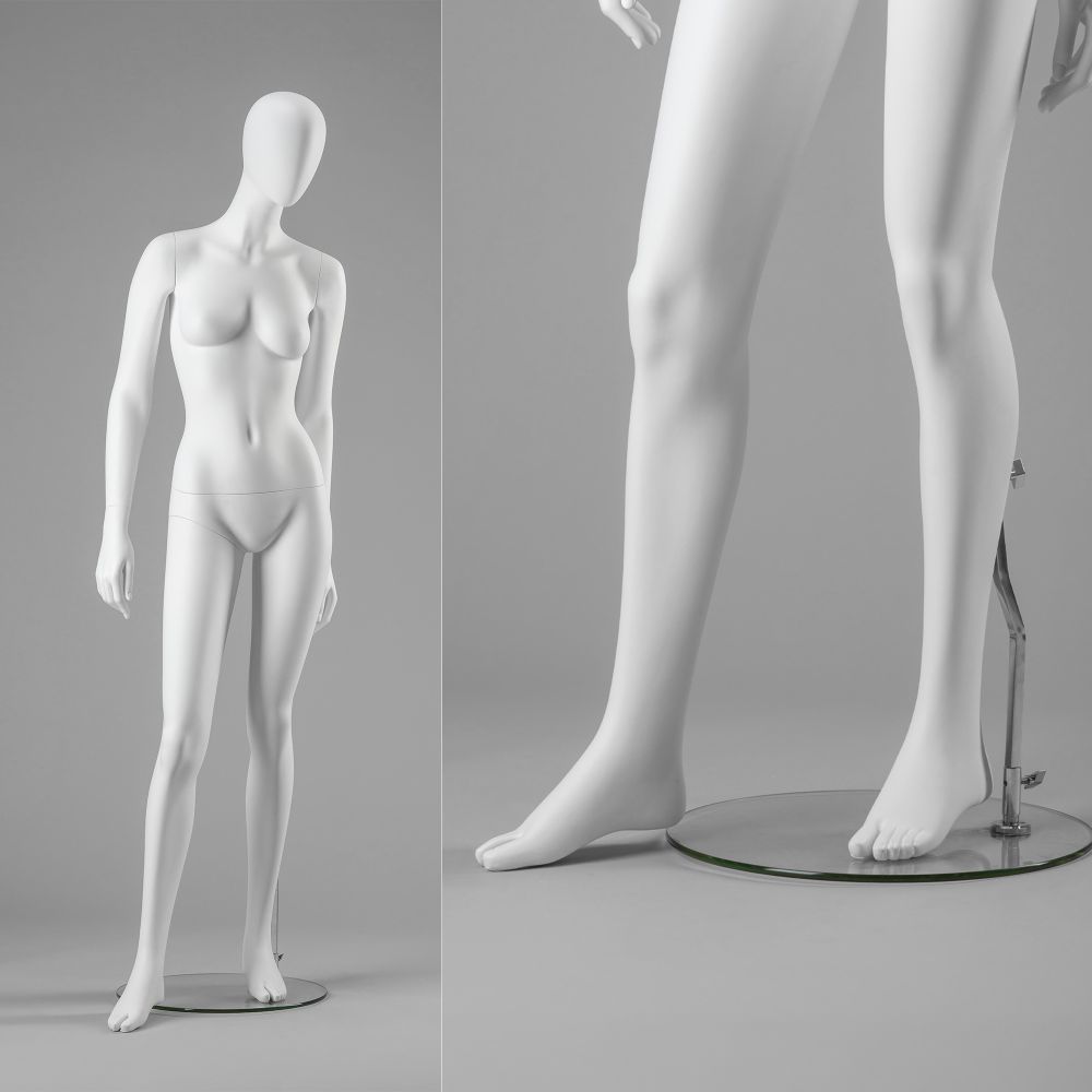 The MORE Mannequins brand cares not only about large clothing businesses, but also smaller ones, and even those taking their first steps in the industry. It was with them in mind that inexpensive women's mannequins appeared in a simple pose that will emphasize any type of styling - from sports to evening creations. Despite a much lower price than the rest of the collection, these models do not differ significantly in their quality. Made of durable fiberglass and covered with anti-scratch coating, they will serve impeccably for a long time.