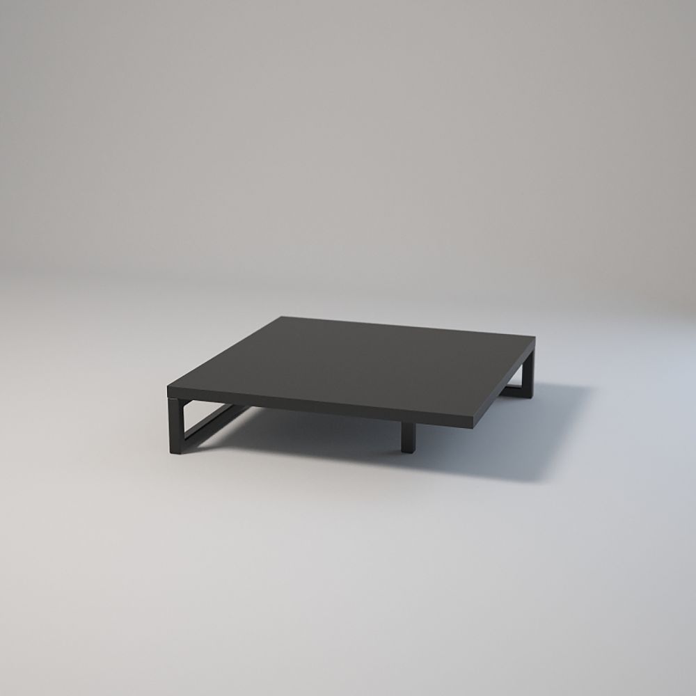 Top: 50x50 cm; Height: 12 cm. Steel profiles: 20x20x1.5 mm, powder-coated. Laminated top board with edging. Assembled with bolts and sleeves. Adjustable feet. Colours: white or black.