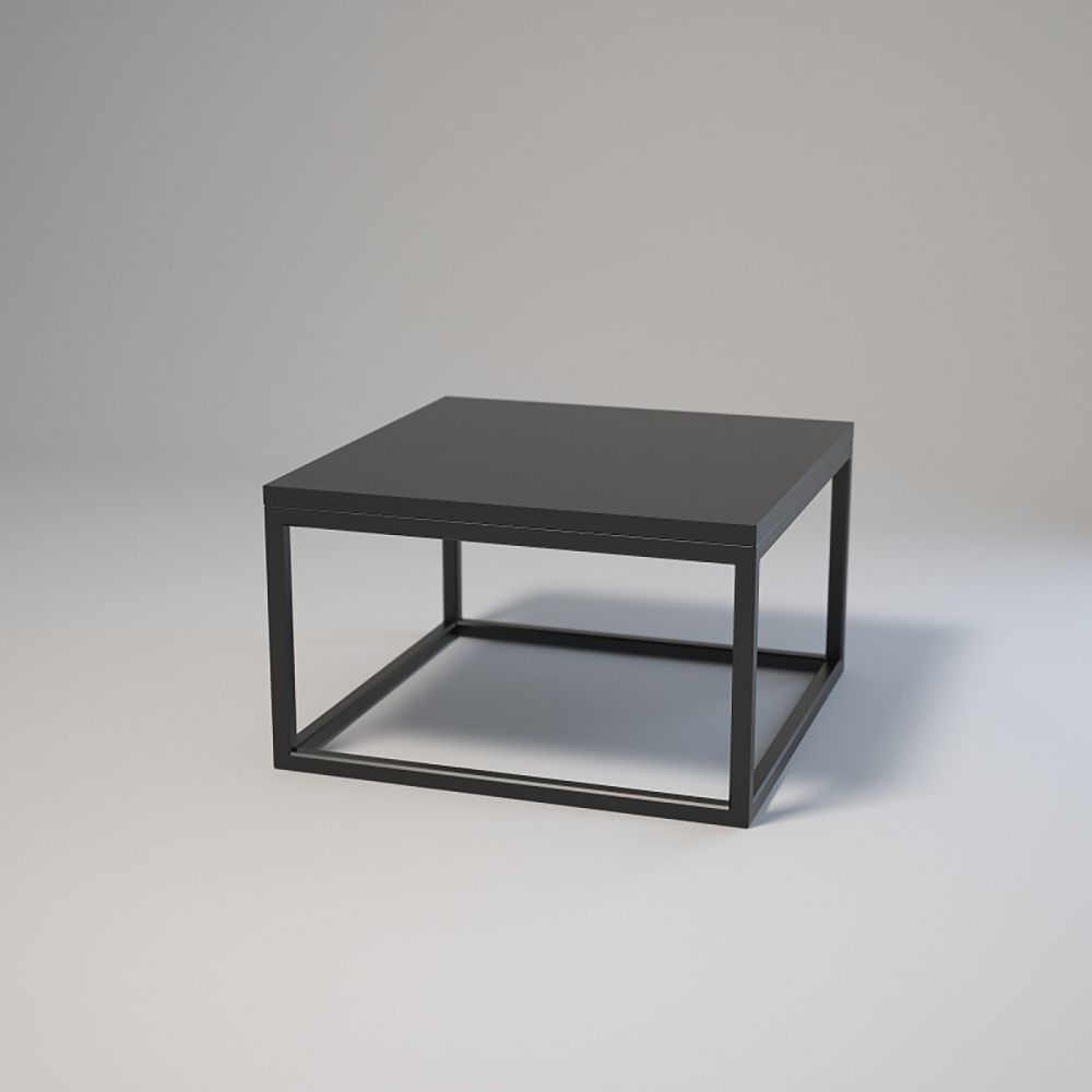 Top: 50x50 cm; Height: 30 cm. Powder-coated 20x20x1.5 mm steel profiles. Laminated board with edging. Assembly via bolts and sleeves. Adjustable furniture feet. Colours: white or black.