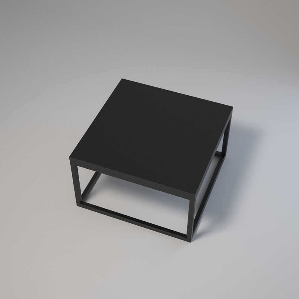 Top: 50x50 cm; Height: 30 cm. Powder-coated 20x20x1.5 mm steel profiles. Laminated board with edging. Assembly via bolts and sleeves. Adjustable furniture feet. Colours: white or black.