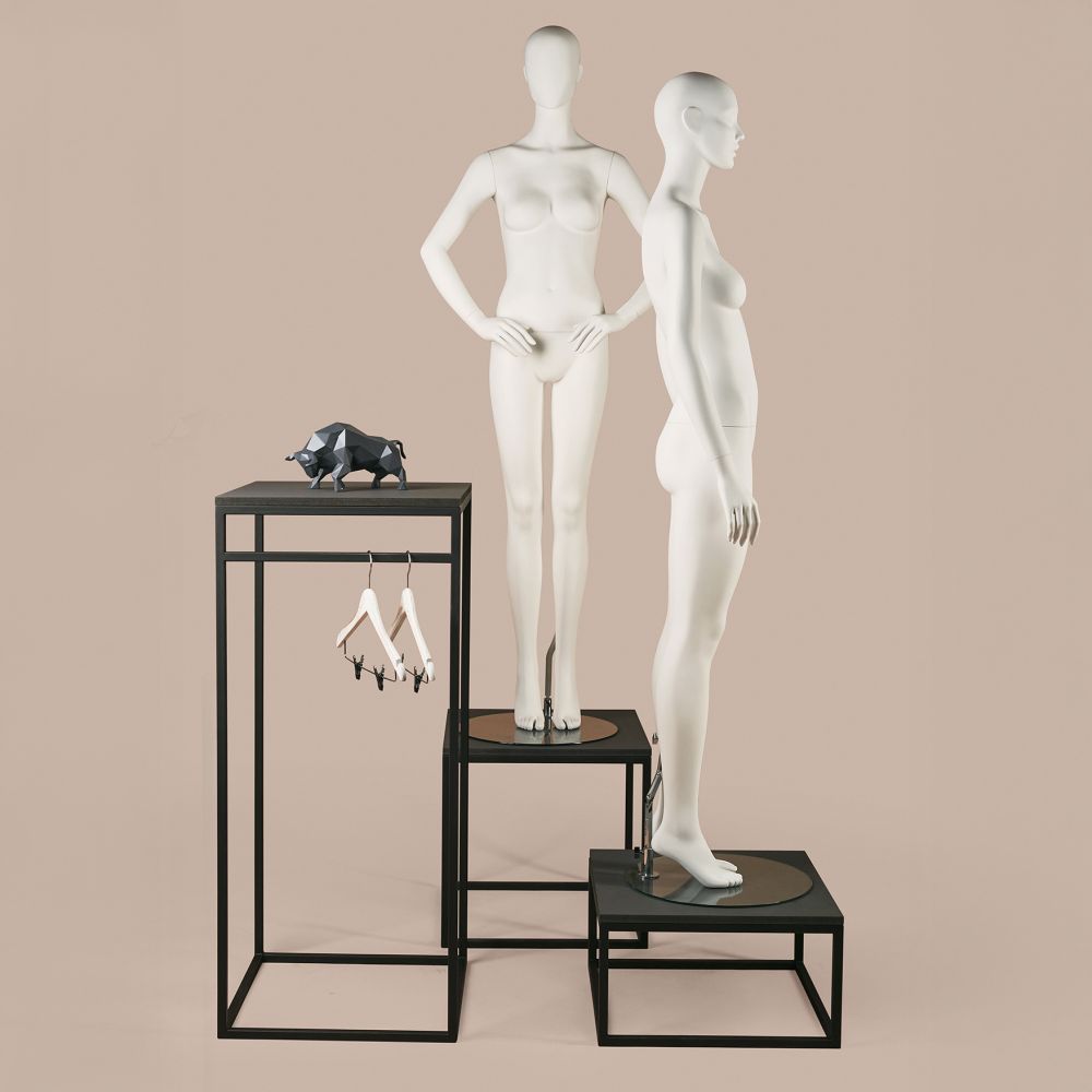 PD50’s proportions make it ideal for showcasing handbags, shoes, accessories or seated mannequins. Its neutral shape fits perfectly within more elaborate multi-level displays and provides a reliable platform for various merchandising needs.