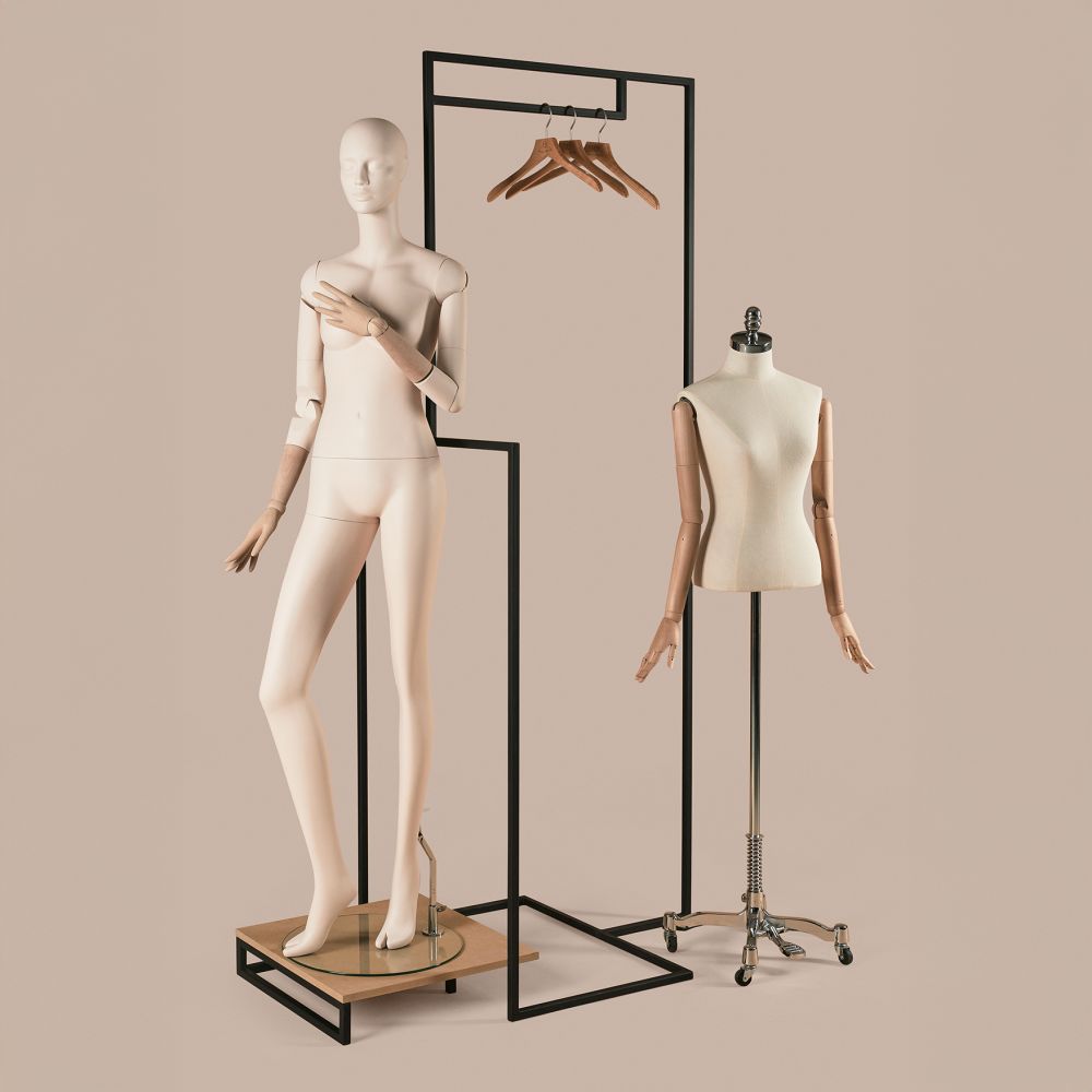 The RA220 frame is a key structural element – a versatile framework that forms the creative backbone of any configuration. It can be used on its own or combined with podiums of varying heights, enabling bespoke retail furniture solutions. It also works perfectly as a clothing rack or display stand for garments, accessories or graphics.