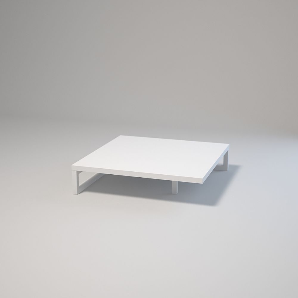 Top: 50x50 cm; Height: 12 cm. Steel profiles: 20x20x1.5 mm, powder-coated. Laminated top board with edging. Assembled with bolts and sleeves. Adjustable feet. Colours: white or black.