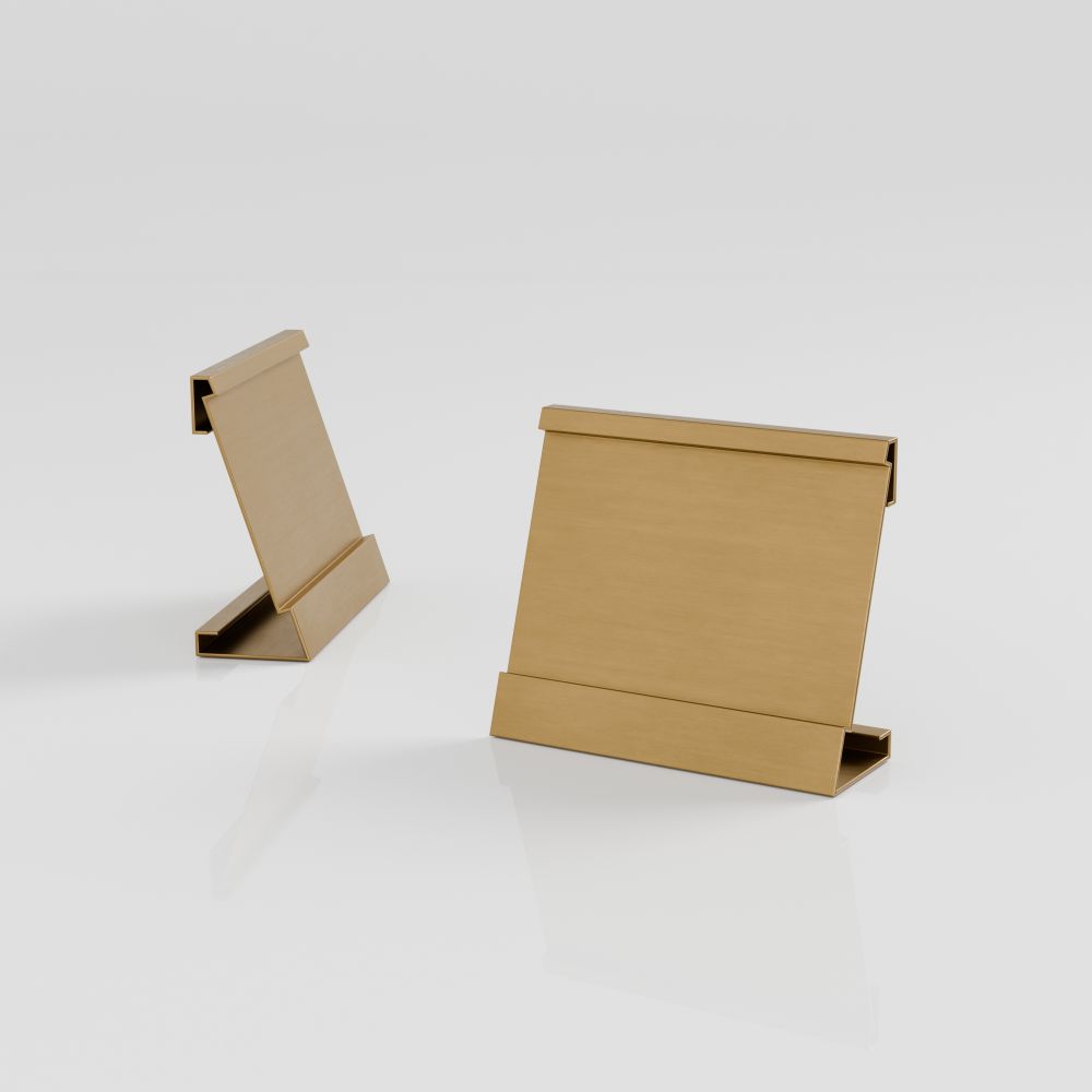 The ES-L-02-GB model is a display stand designed for price tags, business cards, or product information — ideal for slightly larger content formats. With dimensions of 10 × 8 × 3.5 cm, it ensures excellent visibility, perfect for collection descriptions, material details, or special price markings.
