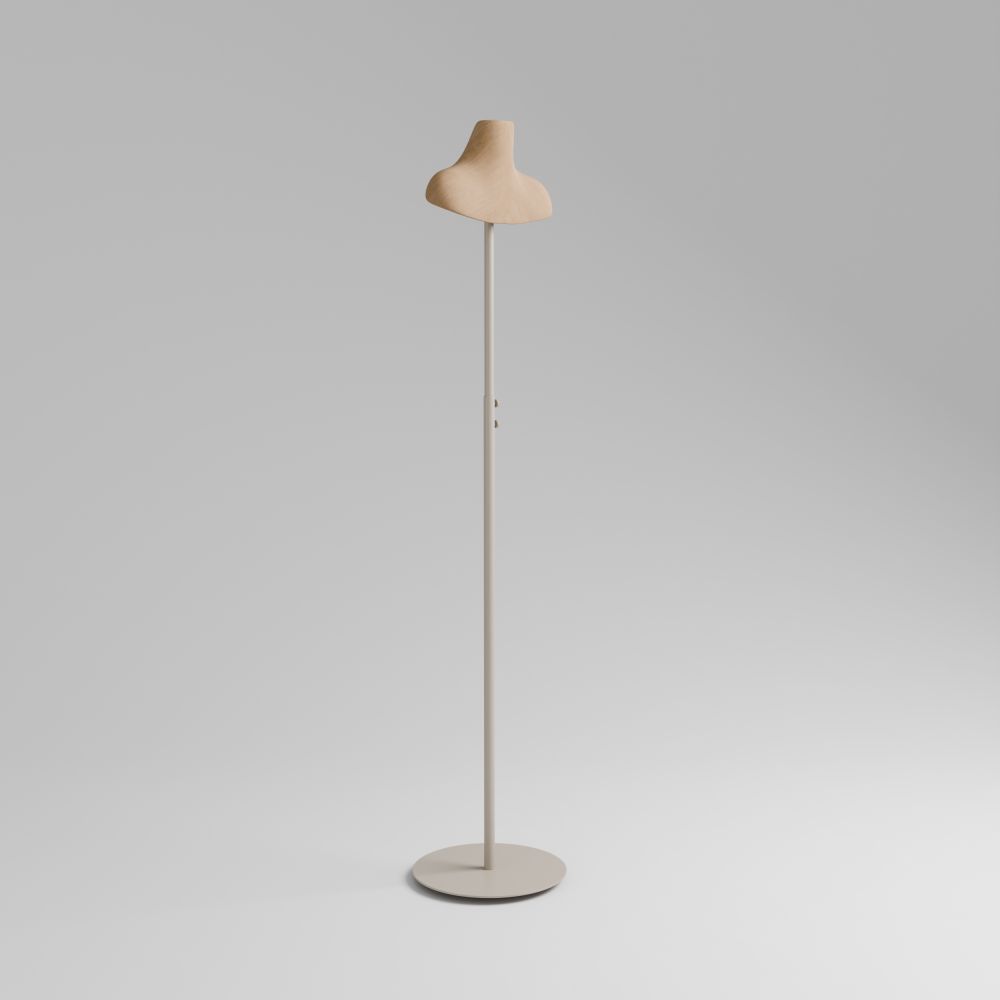 LUM-H is a designer addition to the men's line from the FLO series – a wooden display hanger with a sculpted male neck and shoulder profile. Perfect for showcasing men’s accessories, shirts, blazers or scarves. The adjustable metal base in a refined RAL9010 shade allows for precise height adjustment to suit any retail or window display arrangement.