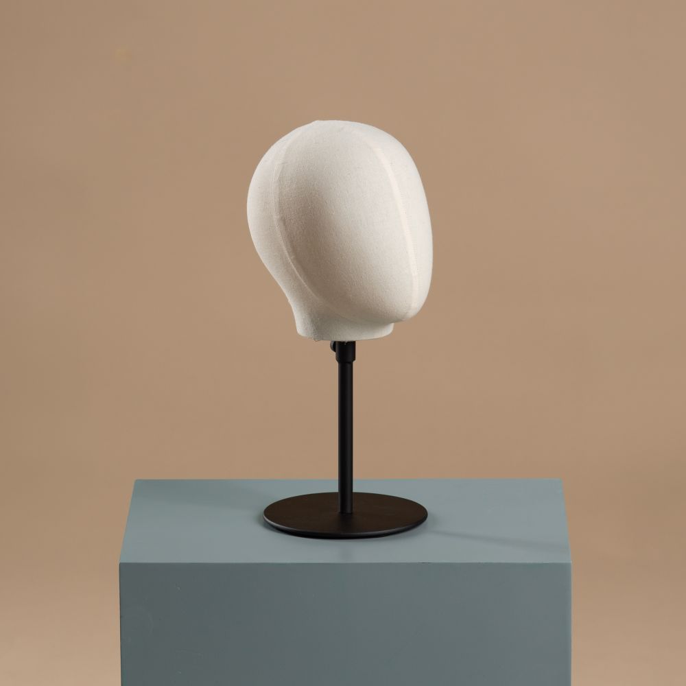 This lightweight and stable children’s head display is perfect for showcasing hats, caps, and kids’ accessories. Designed to match the proportions of a 6-year-old’s head, it provides a realistic fit for displayed products. The soft fabric covering enhances its elegant appearance while preventing creases in delicate materials. An excellent choice for children’s boutiques, showrooms, and trade fair stands.
