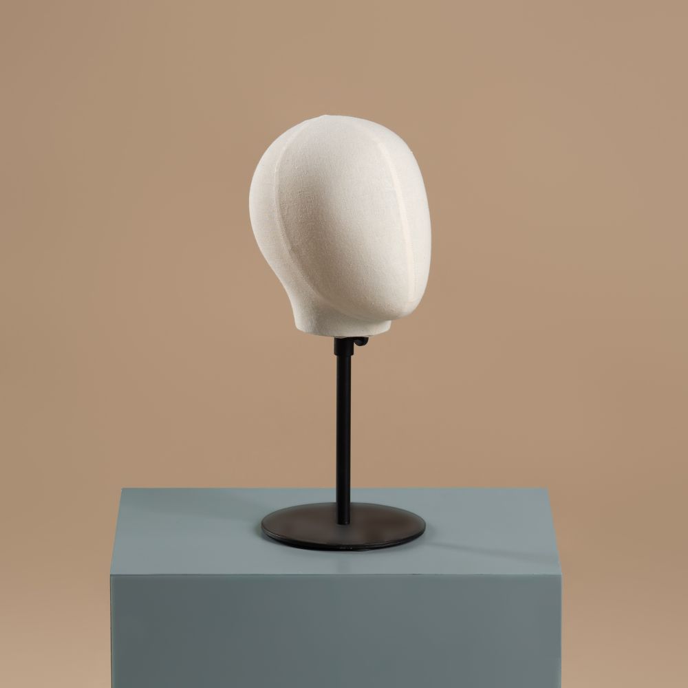 A functional and stylish display head for children’s hats and accessories, designed to reflect the proportions of an 8-year-old child’s head. The fabric-covered surface gives it a refined look while protecting delicate materials from damage. With a stable structure, it is ideal for children’s fashion stores, product exhibitions, and retail displays. A practical solution for presenting accessories in a professional and attractive way.