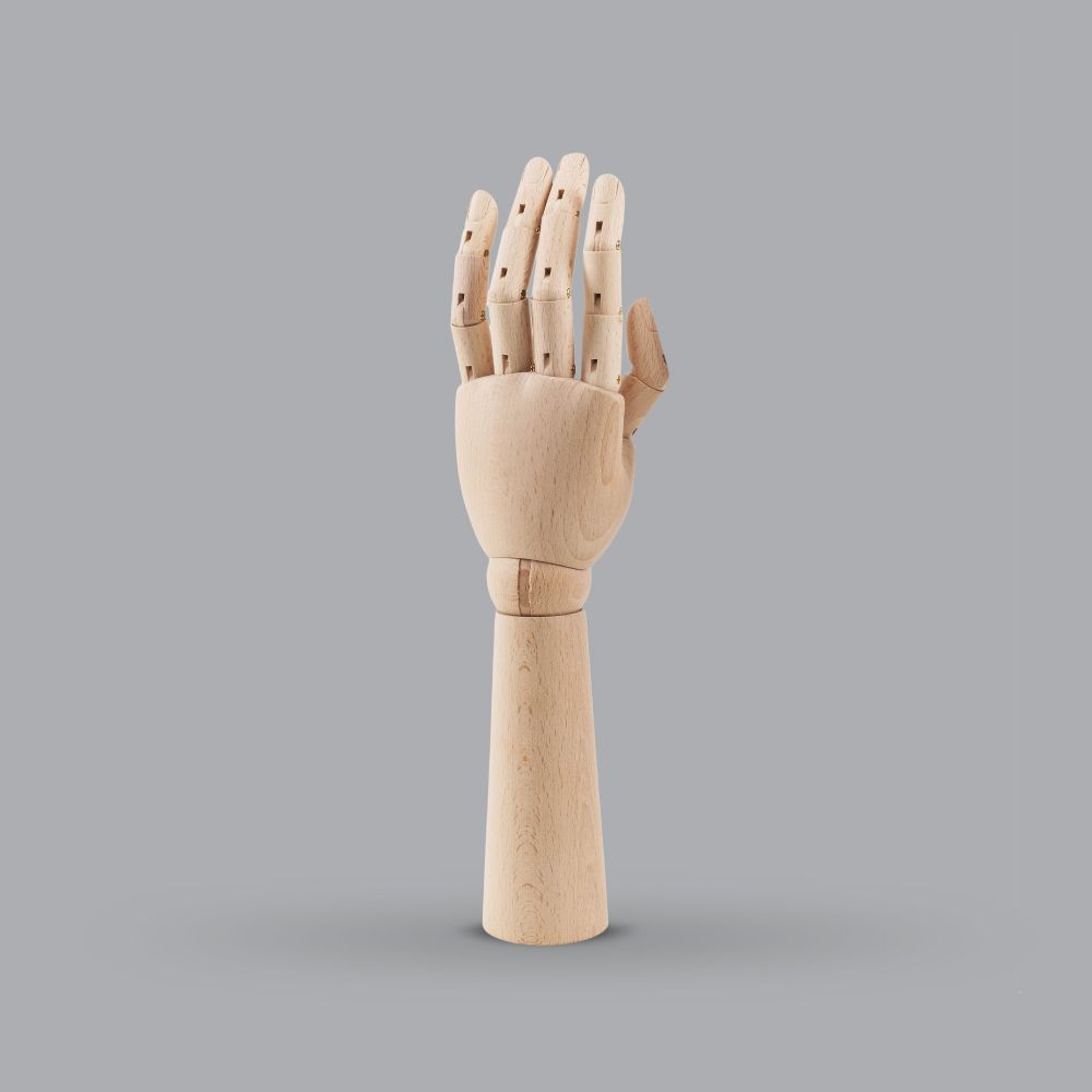 The wooden male hand for accessories is a perfect solution for men's clothing stores aiming to highlight their men's accessories and add-ons uniquely. With its medium size, it will fit seamlessly into your store, adding an elegant and sophisticated touch.