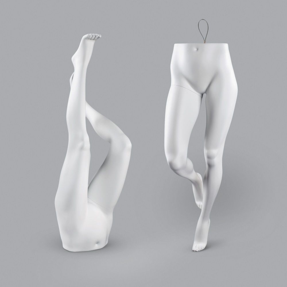 Some garments need to be displayed in a specific way, one that focuses attention exclusively on it. With discerning customers in mind, we introduce our model - hanging mannequin legs. The hanging mannequin legs and hips effectively enhance the shop window. The design of the hanging mannequin legs is inspired by a slim female silhouette. The interesting arrangement of the legs gives the viewer the impression that the figure is running and suddenly freezes in motion. This position introduces dynamism into the shop window. It should therefore come as no surprise that this model will work best for sportswear shops, where movement plays a fundamental role. The display has been made in universal white with a matte finish, so it will successfully blend in with any type of display. The silhouette corresponds to size 36 (S). All the intricacies have been faithfully reproduced - at MORE Mannequins we take care of every detail, even the smallest one. This makes the whole thing extremely realistic. It is therefore the way to a distinctive shop window.