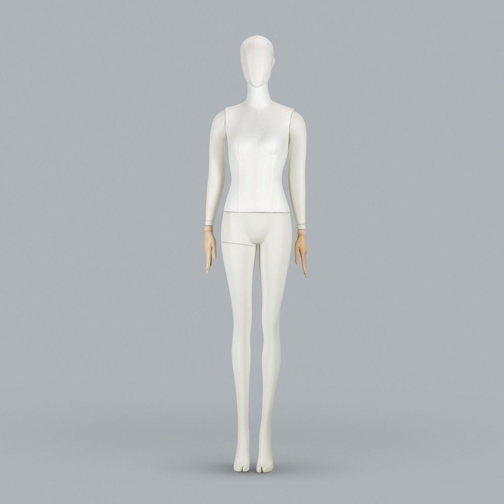 The mannequin comes with a metal RAL9010 base that is stable and durable. The base has an ankle attachment with butterfly nuts, making it easy to secure the mannequin. Additionally, gloves and color corrector are included to keep the mannequin looking new.