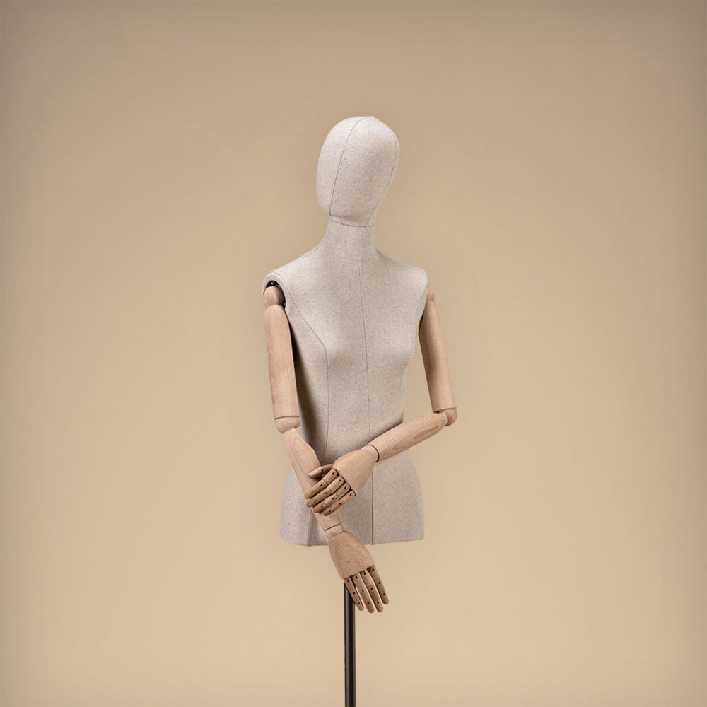 Our mannequin torso comes with wooden arms that allow full adjustability. This makes it easy to position the arms according to the displayed product, creating attractive arrangements and compositions. Whether you are showcasing clothing, jewelry, or accessories, the adjustable arms enable dynamic presentations.