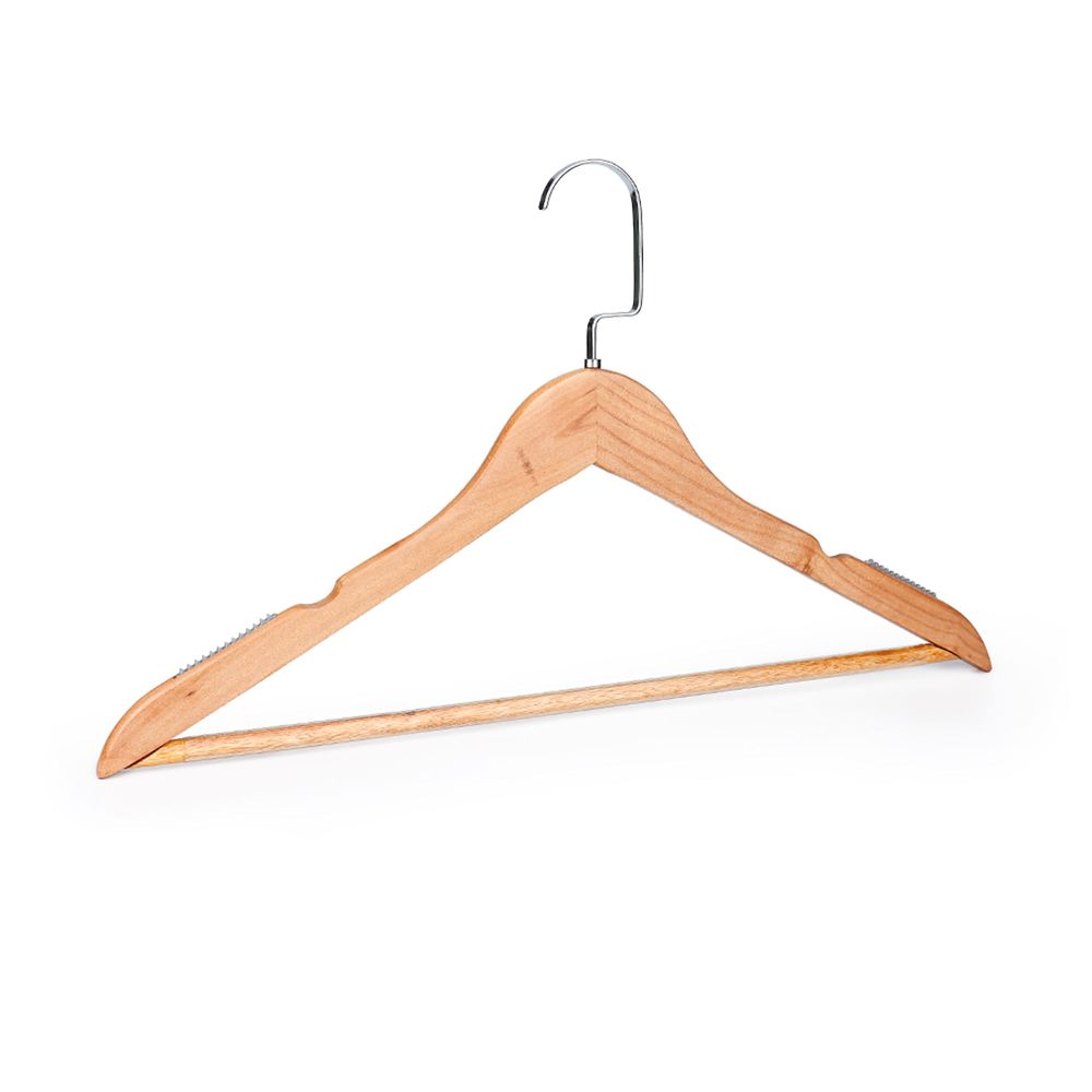 The HGR-WD-010 hanger is designed with functionality and subtle aesthetics in mind. Made from natural lotus wood and finished in a smooth, natural color, its dimensions – 44.5 x 1.2 cm – make it a great choice for displaying shirts, blouses, trousers, or lightweight garments.